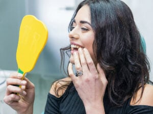 Porcelain Veneers are applied to your front teeth to achieve the Hollywood smile. Veneers are carefully crafted to specification of the smile you desire. You can permanently change the color, shape and length of your front teeth and never have to worry about their appearance again. Veneers will be impervious to biting pressure and temperatures. Once placed, you can quickly return to your eating habits and enjoy your brand-new smile!