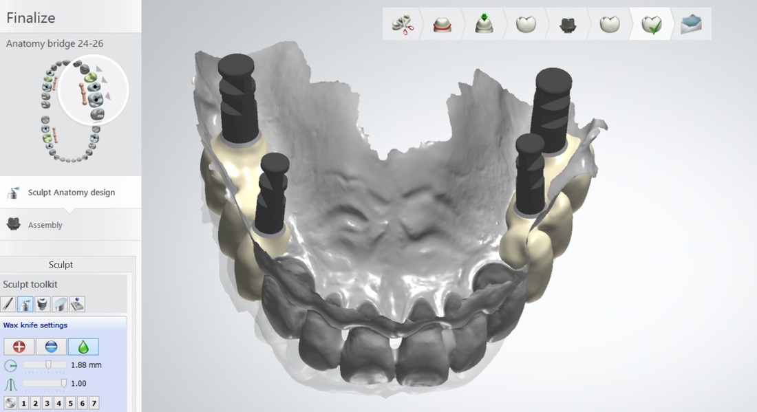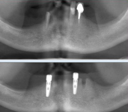 - Simultaneous placement of three dental implants, combined with bone graft.