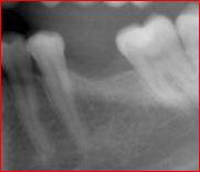 This 65 year old man had pain in his lower jaw, during initial emergency exam after recent extraction of the lower left molar done with another dentist.