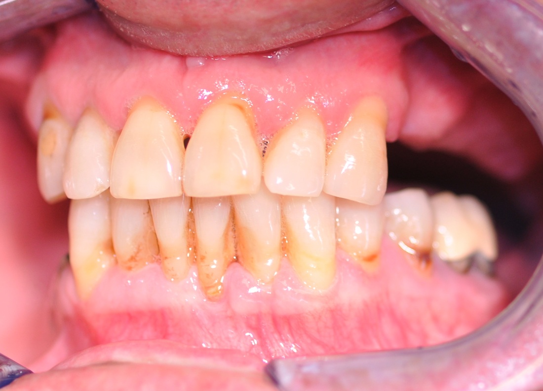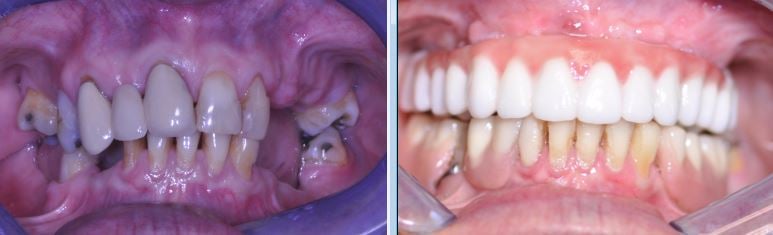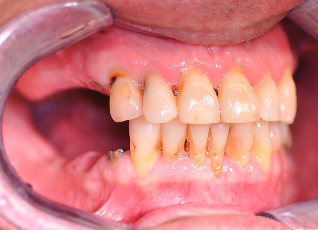 This patient presented with the poor prognosis for his upper teeth, severe bone loss and bite problems.